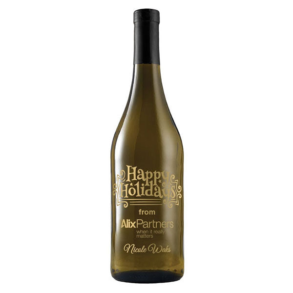 The A+ Wines Etched Chardonnay White Wine with 1 Color Fill will instantly make your company’s custom logo look a little more luxurious. Perfect for holiday gifts or new employee welcome kits, this 750ml bottle is filled with a crisp, delicious white wine that will please even the pickiest palettes.