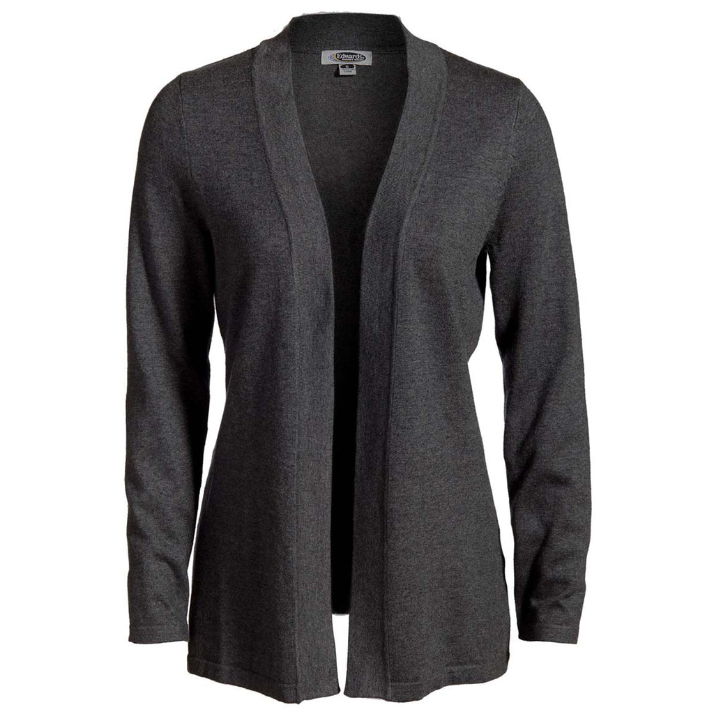 Bring back a custom classic with the Edwards Women's Smoke Heather Open Cardigan available in multiple colors. Made of a blend of cotton, acrylic, and nylon with full fashioned sleeves, these cardigans offer a longer length and flattering silhouette that will be a big hit with a corporate embroidery in your choice of design. Use these as part of hospitality apparel or even corporate uniforms to create a classic, yet unique look for your company. Perfect for the office, the weekend, or a big event, these are easily used as an outer layer to add to any outfit.Highlights