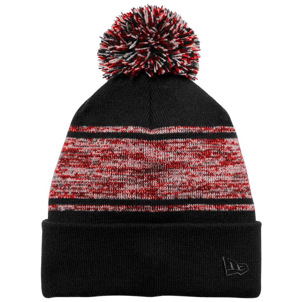 New Era Black/Scarlet Knit Chilled Pom Beanie