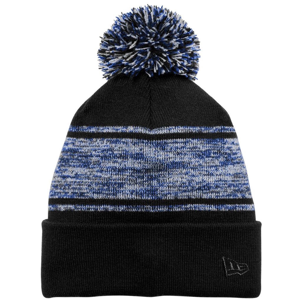 Add a custom logo to the New Era Black/Royal Knit Chilled Pom Beanie to create an on-trend look in a one-size-fits-most style. The 100% acrylic beanie is fun, colorful, and functional, whether heading into work, hitting the black diamond slopes, or building snowmen in your yard. Place an order today; these will not last.This product cannot ship outside of the United States.