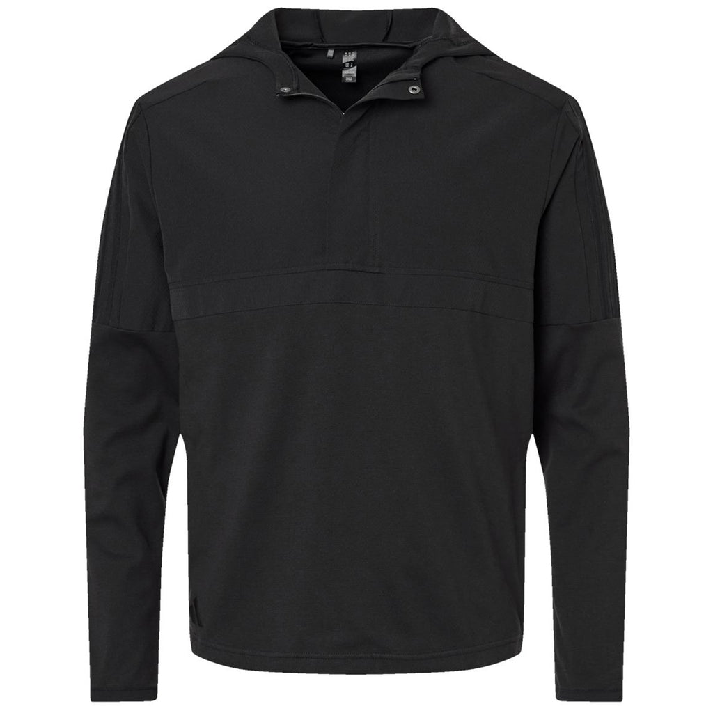 Create a corporate logo for the Adidas Men's Black Anorak for a unique look to add to your logoed apparel options. This lightweight hooded half-zip is a must-have for those that like the look of a hoodie without the bulk. It is great as a uniform at work for servers, busboys, or those in a more relaxed environment who still need to look and feel great.This product cannot ship outside of the United States.