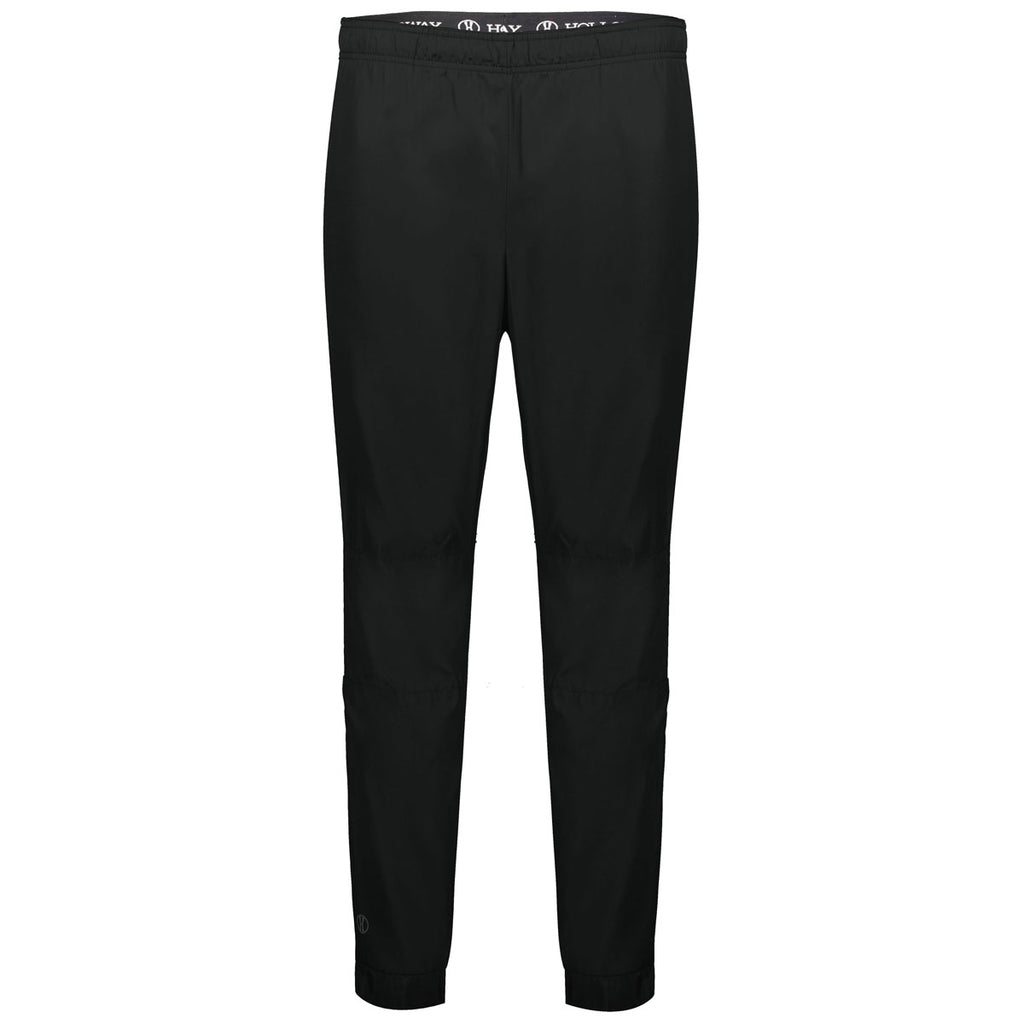 Custom embroidery will look outstanding on the Holloway Men's Black SeriesX Pant. These pull on pants with elastic waistband with inner drawcord are the ideal combination of comfort and style. Try a company logo to use these as part of employee uniforms in certain types of business or add a custom logo to use as a product to promote your gym, team, workout brand, or anything you want. The 100% polyester pants with micromesh lining are lightweight, wind, and water resistant with a subtle textured pattern. Side seam pockets and a back welt pocket paired with a tapered leg with zipper on the outside lower leg make these great as warm-up gear and much more. Place an order today.Highlights