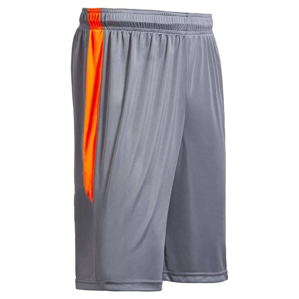 Tackle your workout regimen in Expert Men's Steel/Safety Orange Outdoor Short that won't hinder your movement even during intense training activities. Sweat wicking shorts boast inseam with insert A-line side panel while an elastic waistband with adjustable draw cord ensures a custom fit. Contrast side panels make for a stylish touch. Anti-bacterial treatment keeps the garment fresher for longer. Active wear is among those few items that attract a broad audience, and these men's shorts being one of those items are customizable with logo imprint of your brand or company. It's perfect for corporate giveaways, dance studios, promotional merchandise.The minimum order for this product is 12 pieces.