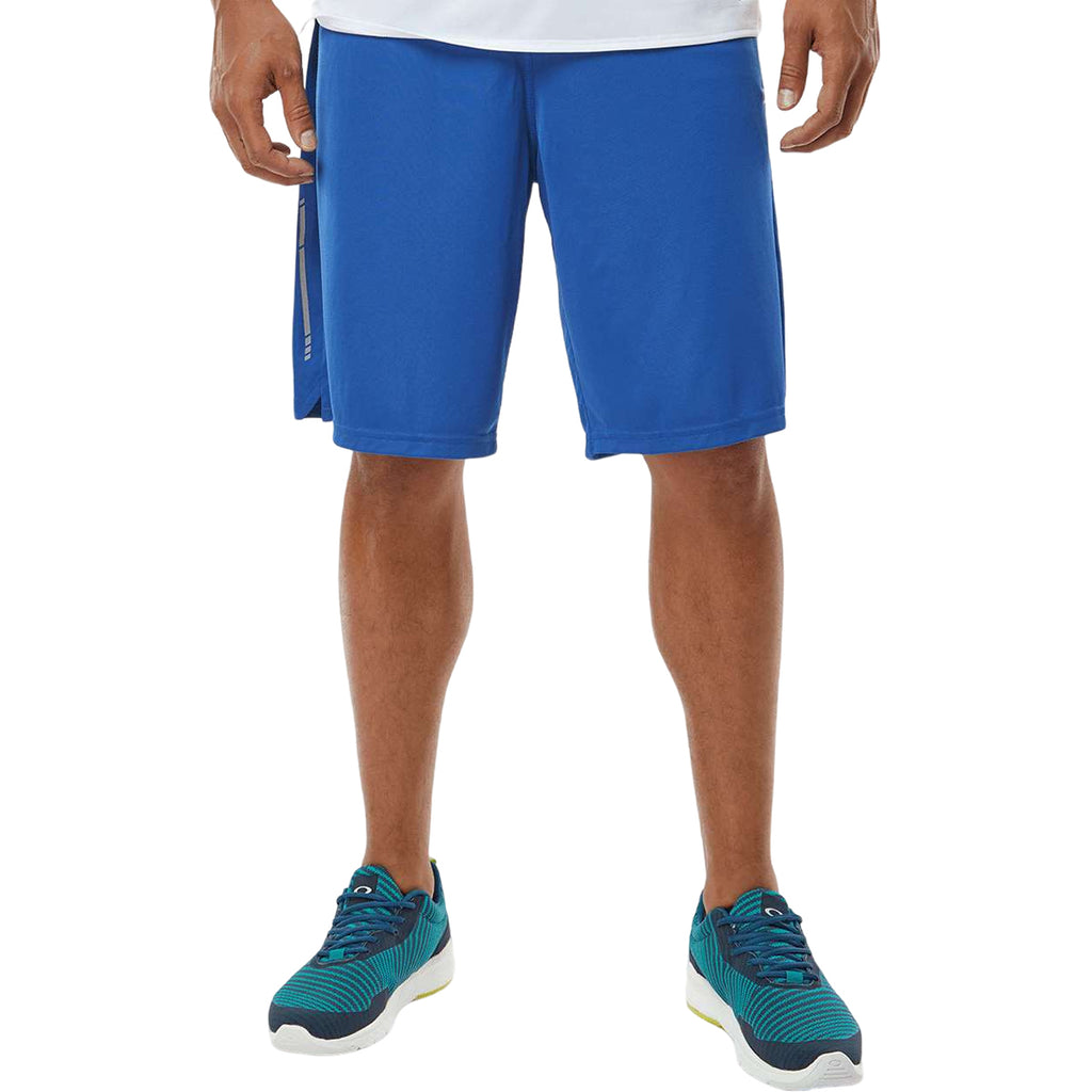 Adding your company or team's custom logo to the Oakley Men's Team Royal Team Issue Hydrolix Shorts means it will always be easily spotted at the gym or practice field. These athletic shorts come complete with exceptional details like a jacquard waistband with braided drawcord and side hand pockets.