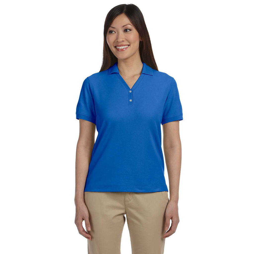 Devon & Jones Women's French Blue Pima Pique Short-Sleeve Y-Collar Polo