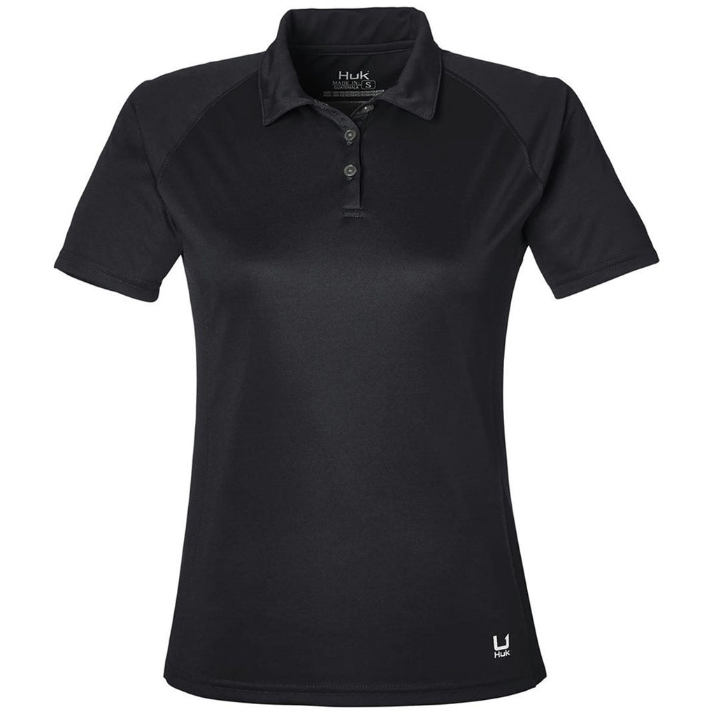 HUK Women's Black LoPro Solid Performance Polo