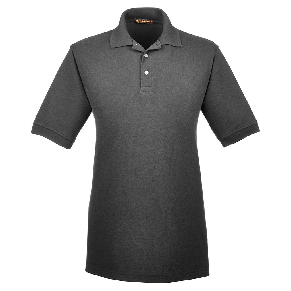 Thirty-five percent cotton pique and 65% rugged polyester pack a powerful fashion punch for the Harriton Men's Charcoal 5.6 oz. Easy Blend Polo. The wrinkle resistant polo looks as fresh at the end of the day as it did the first thing in the morning. Blended cotton and polyester prevents the shrinkage that sends other types of polos to thrift stores. Set-in sleeves exude high fashion, while the hemmed bottom and side vents create a unique look that will grab the attention of everyone you meet. Attach your company logo to the large imprint area to take advantage of all the attention.Corresponding Women's Style: Harriton Women's Charcoal 5.6 oz. Easy Blend Polo