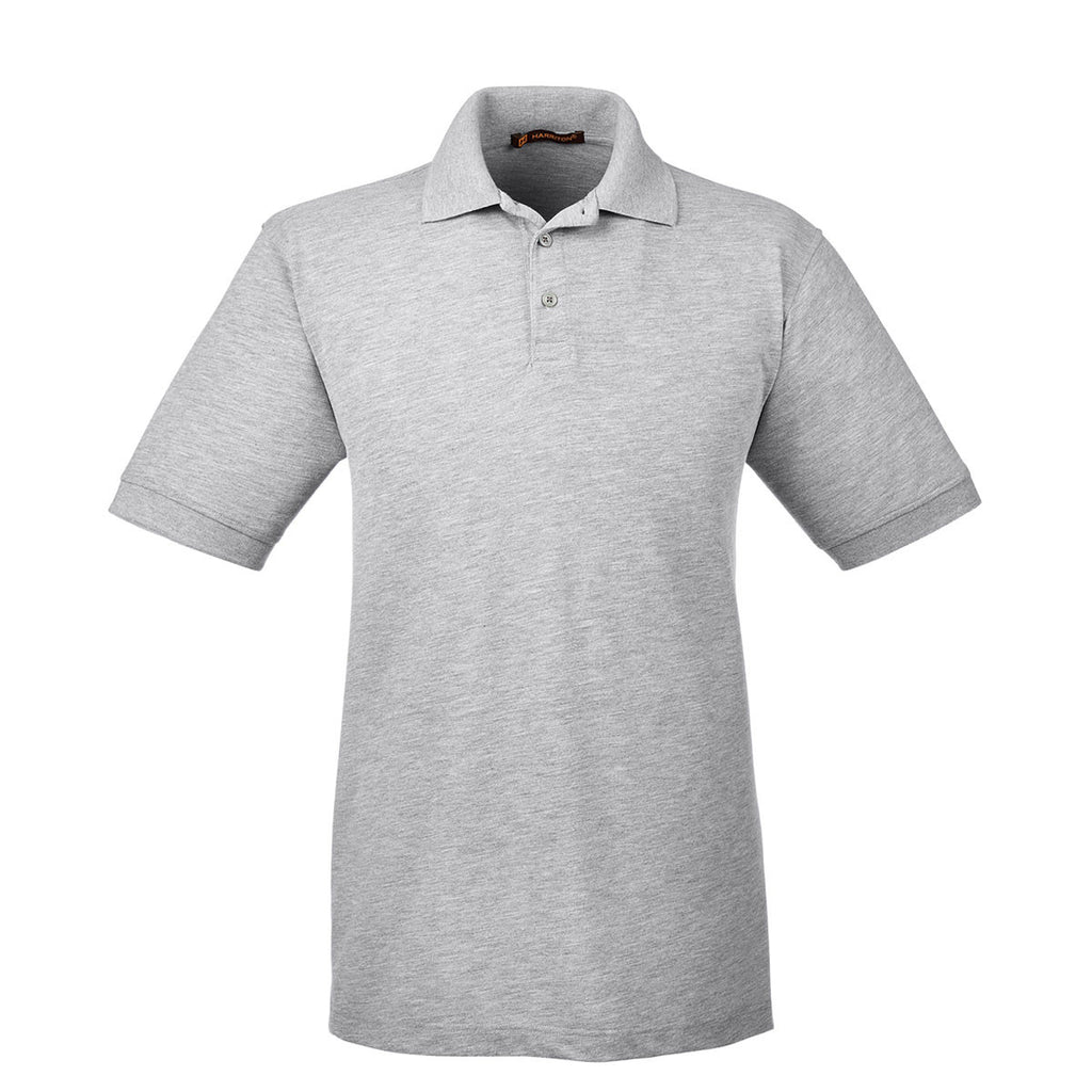 Thirty-five percent cotton pique and 65% rugged polyester pack a powerful fashion punch for the Harriton Men's Grey Heather 5.6 oz. Easy Blend Polo. The wrinkle resistant polo looks as fresh at the end of the day as it did the first thing in the morning. Blended cotton and polyester prevents the shrinkage that sends other types of polos to thrift stores. Set-in sleeves exude high fashion, while the hemmed bottom and side vents create a unique look that will grab the attention of everyone you meet. Attach your company logo to the large imprint area to take advantage of all the attention.Corresponding Women's Style: Harriton Women's Grey Heather 5.6 oz. Easy Blend Polo