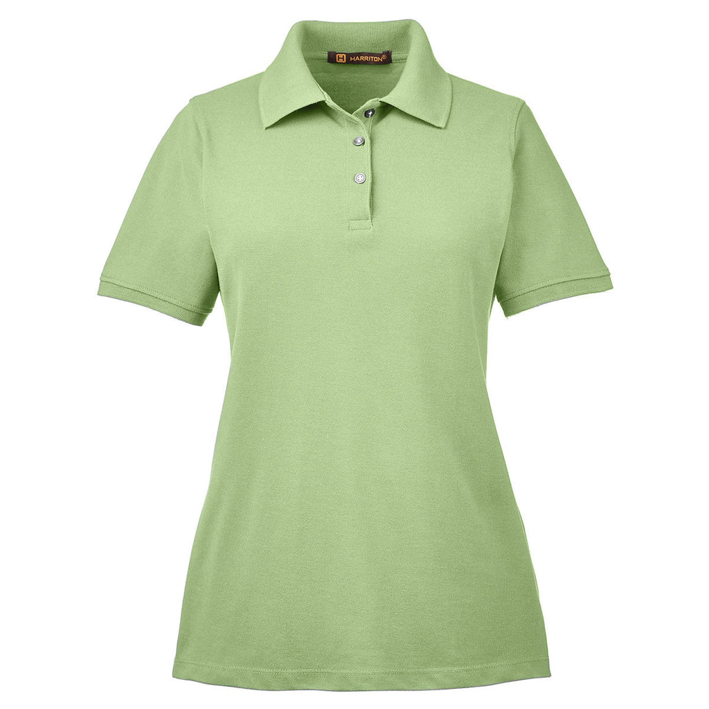 With a softly shaped design to create a more flattering feminine look, the Harriton Women's Lime 5.6 oz. Easy Blend Polo is sure to turn heads at your next business seminar. The flat-knit collar and cuffs complement the three-button placket to produce a stylish polo to wear at the office, as well as outdoors working on home improvement projects. Blended cotton and polyester never wrinkles to keep you looking professional throughout the day. The silky soft fabrication reduces shrinkage to ensure maximum comfort for years to come. Attach a custom logo that attracts the interest of customer prospects.Corresponding Men's Style: Harriton Men's Lime 5.6 oz. Easy Blend Polo