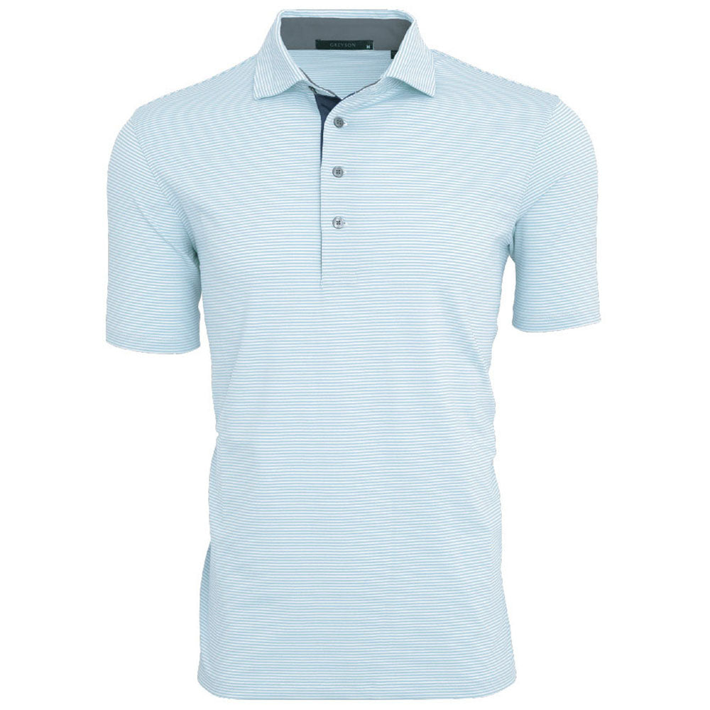 The custom logo Greyson Men's Wolf Blue Saranac Polo offers stylish comfort in an easy-to-distribute promotional product. Get the word out on your company name by wearing this product at upcoming corporate events, such as trade shows or recruiting events.Highlights