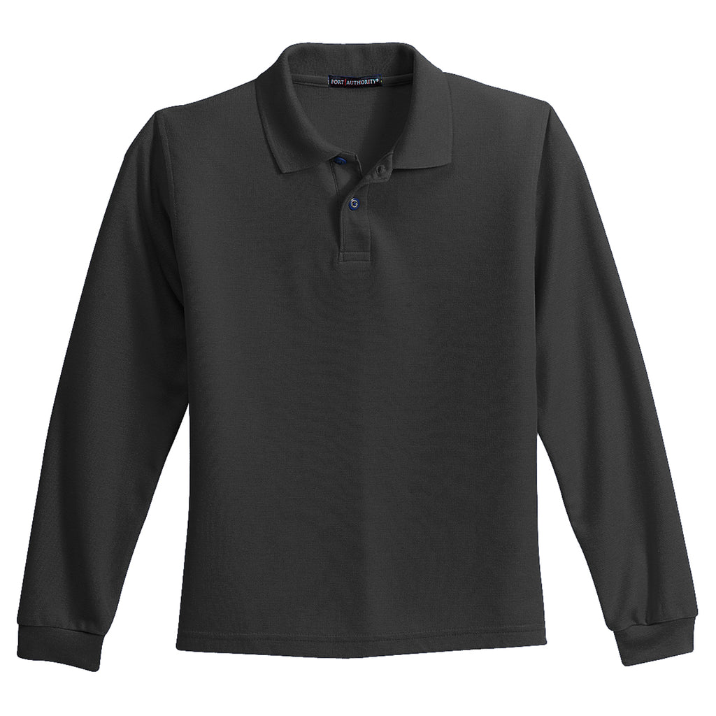 Port Authority Youth Black Long Sleeve Silk Touch Polo