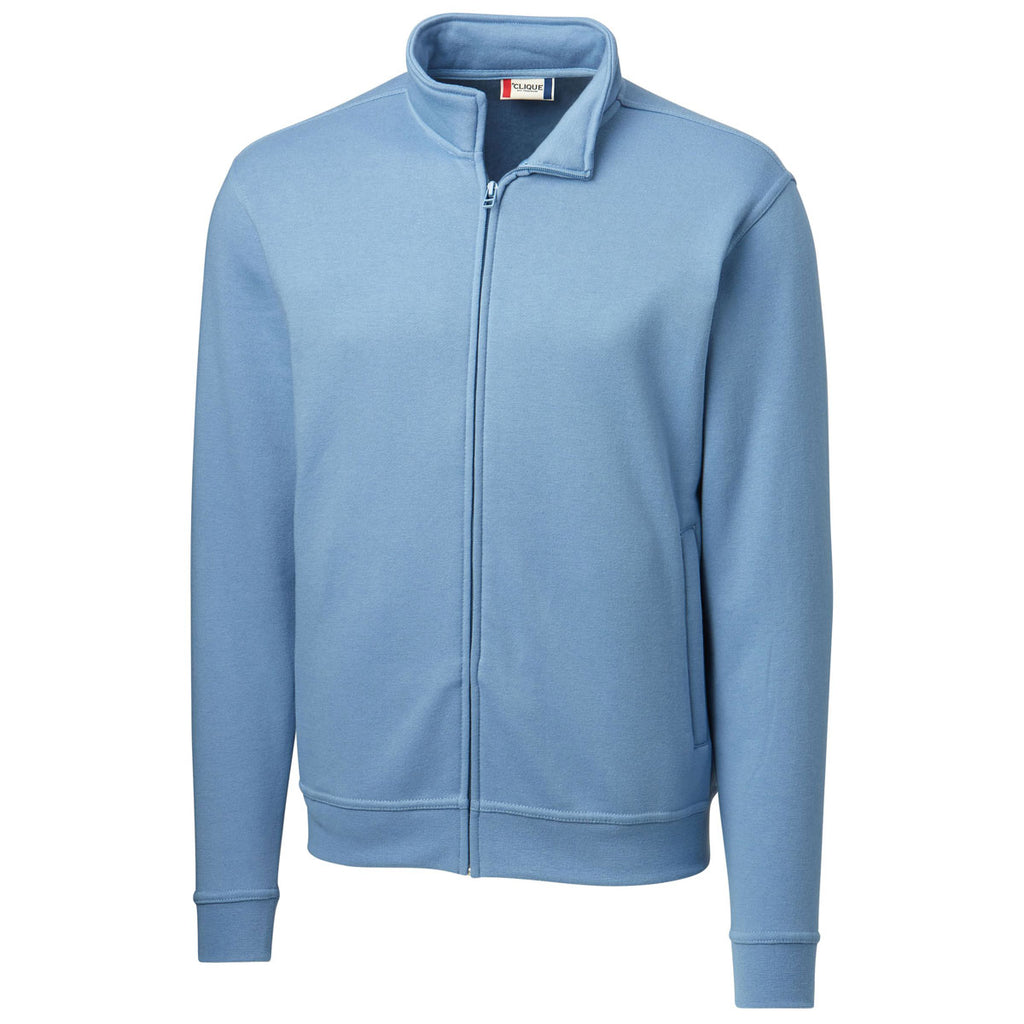 As the perfect layering company apparel, the Clique Men's Light Blue Spencer Full Zip Mock offers a seamless front zipper that allows you to shed the stylish jacket quickly when the temperature climbs. Wear the multi-purpose full zip jacket when you take time off for a backpacking excursion, as well as when you mingle with professional peers at outdoor networking events. Make sure to add your company logo on the embroidery area to attract the attention of everyone you meet in the community. Blended soft cotton and rugged polyester combine to deliver the ultimate one-two fabric punch.Highlights
