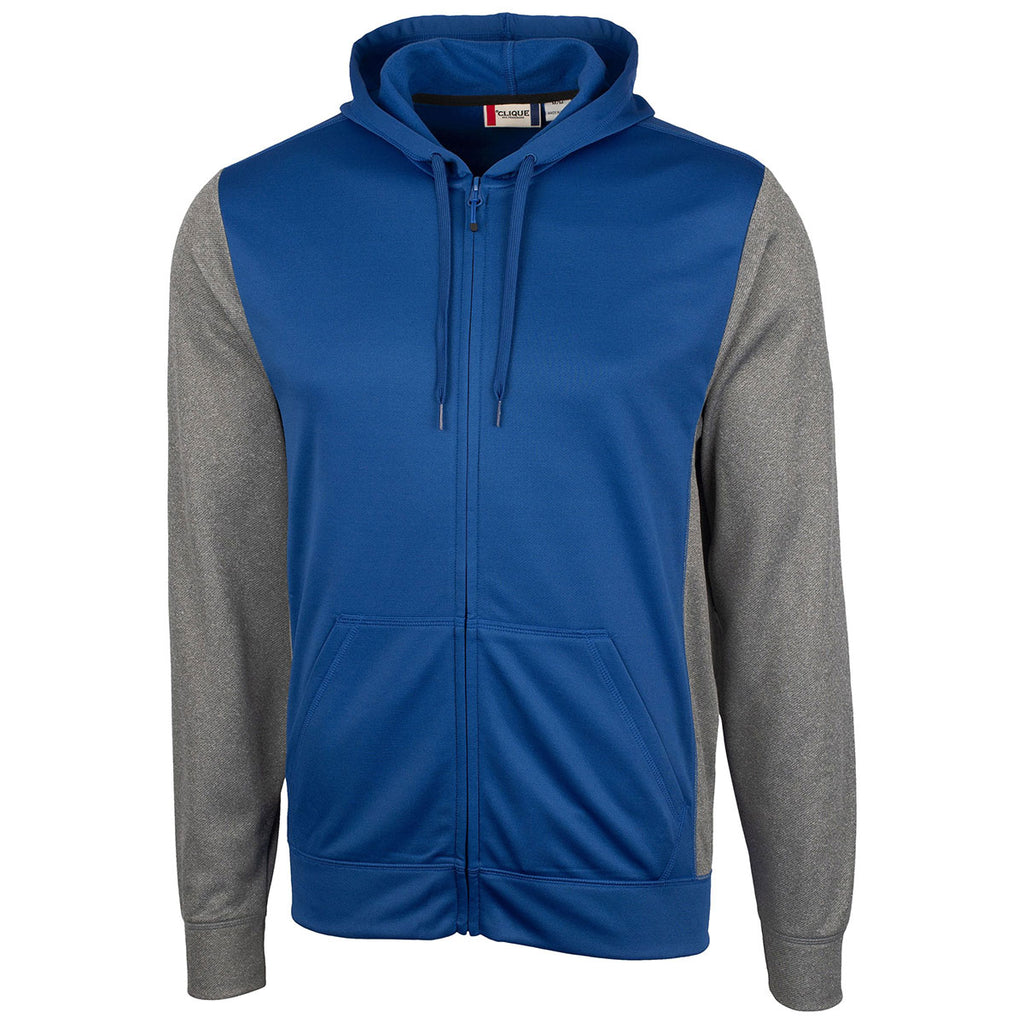 The Clique Men's Royal Blue Helsa Sport Colorblock Full Zip offers cozy comfort in a product you'll likely want to wear as often as possible. With a company logo added to the sweatshirt, you can advertise your company name and hand this out as employee apparel or to guests at corporate events. You have a variety of unique colors to choose from and you're sure to find the right color tone for your logo. Other features include a 100% polyester fleece material, attached hood with drawstrings, full zip closure, long sleeve cuffs in heather fabric, and dual pockets.