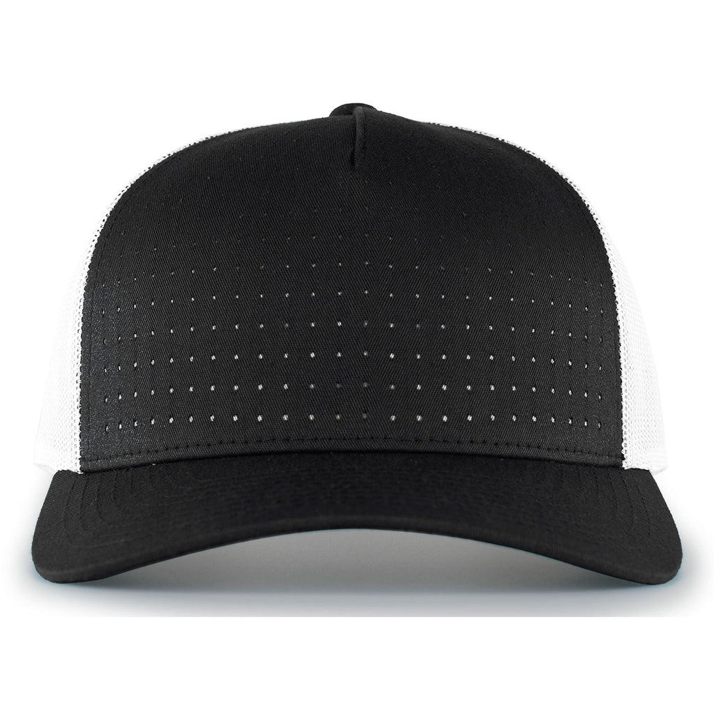 Pacific Headwear Black/White/Black Perforated 5-Panel Trucker Snap-Back Cap
