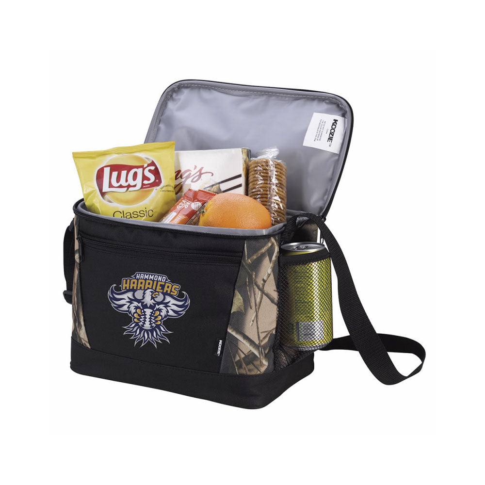 Ready to be custom imprinted with your company's name or logo, this Koozie Camouflage Lunch Kooler is perfect for anyone who yearns to be outside. It features a zippered main compartment, top carry handle while adjustable shoulder strap offers comfortable carrying. Accented with a camouflage pattern, this campsite-ready accessory is set to keep recipients hydrated on hunting expeditions.