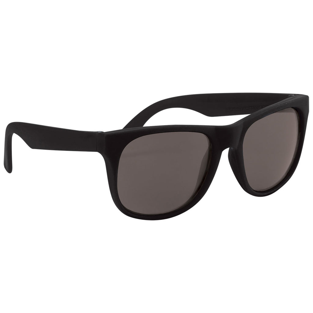 Add your custom name or design to the Hit Black Rubberized Sunglasses to keep people protected and your brand prominent. The multiple colorful options will be a Hit for vacation, travel, and general use. Great for seasonal shops, vacation rentals, gifts, or prizes for special events. The rubberized glasses are tough for long term wear.