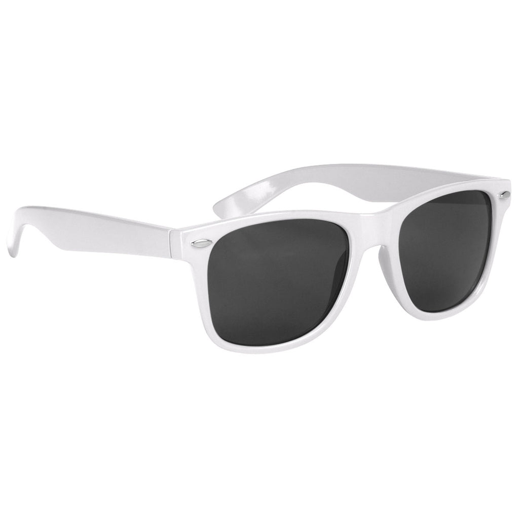 Stay cool in custom Hit White Malibu Sunglasses. These sunglasses come in multiple colors, some of which are made of recycled materials. The UV400 lenses provide 100% UVA and UVB protection so you can enjoy a day at the beach, a sunny morning jog, or a long drive in the car with ease. A perfect addition to many shops.