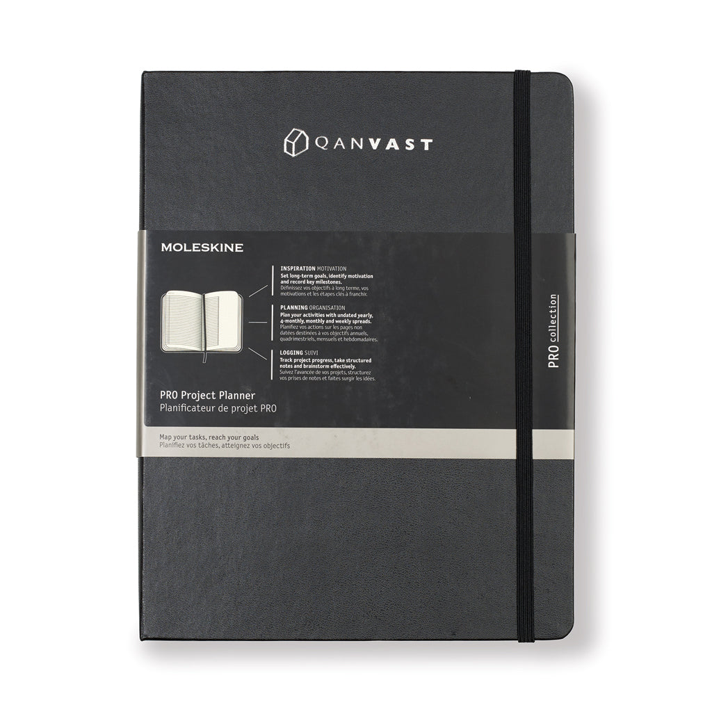 The Moleskine Black Hard Cover Ruled XL Professional Project Planner is an undated diary/planner that allows you to set the pace and reach your goals throughout the year. Although the dates are left blank, it is structured in such a way as to invite you to set long-term goals, identify motivation and document key milestones. There are yearly, 4-monthly, monthly and weekly sections for you to personalize and map your time, as well as a project progress section for structured notes and effective brainstorming.The minimum order for this product is 25 pieces.