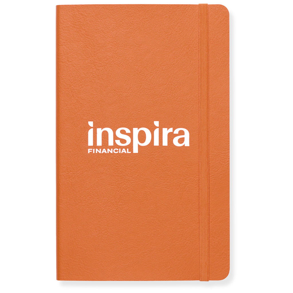 Take notes in style with a custom Moleskine Orange Precious & Ethical Vegan Soft Cover Ruled Large Notebook. This vegan-friendly notebook has a soft cover and is filled with paper from well-managed, FSC certified forests, making it a wonderful gift for employees, students, and friends. The notebook arrives in an elegant gift box.