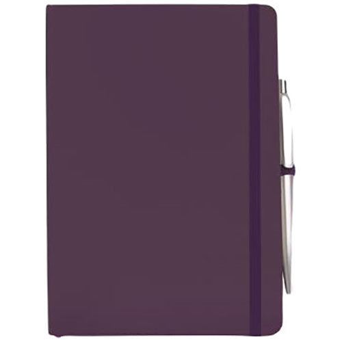 Your company's custom logo will look incredibly professional when added to the Good Value Purple Prime Journal with Soca Pen. Great for having on-hand around the office, this sleek blank journal will provide your team with plenty of space to take notes or jot down their big ideas. It also comes complete with a pen and pen loop.