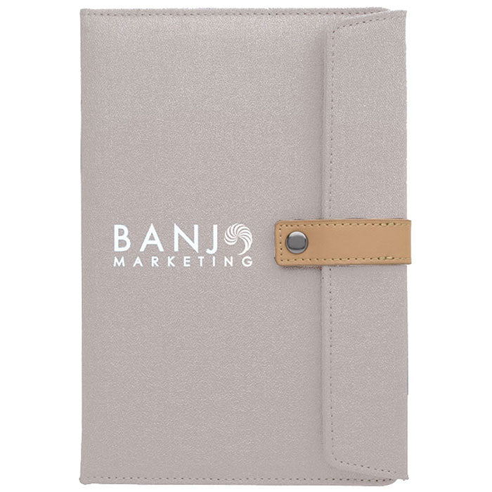 A logoed BIC Grey Two-Tone Journal with Leather Closure is the perfect journal to show off at your next recruiting event, then surprise those who sign up with this journal as part of their new employee welcome package. Thanks to heat transfer, it can have your custom logo, too!