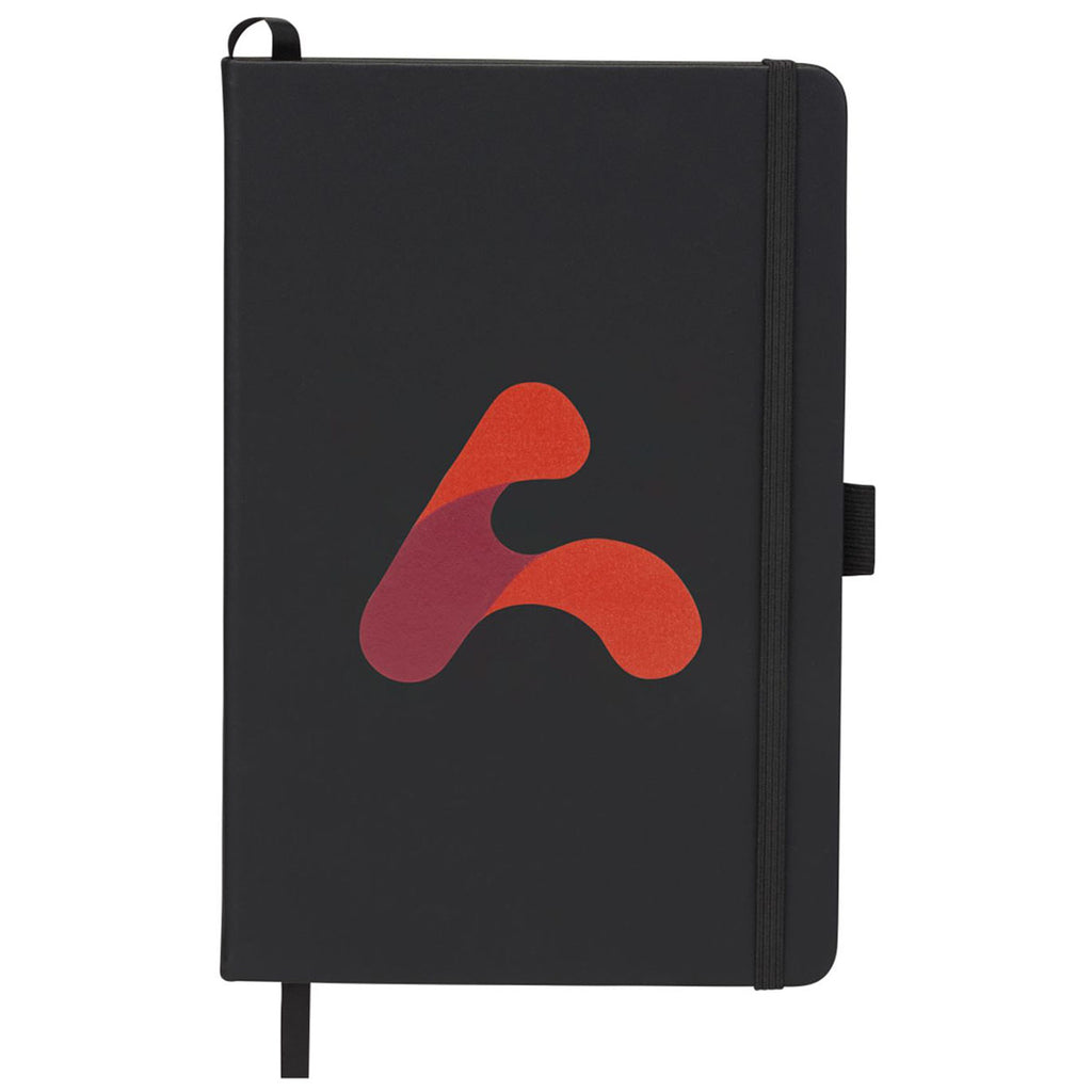 Order the JournalBooks Black Mix Pineapple Leather Bound Notebook for a unique and sustainable notebook for the office. Made of 30% repurposed pineapple components. Comfortably take notes during meetings in a great-looking notebook for a reasonable price. Available with a debossed logo.