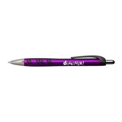 Rugged metal protects the ink cartridge on the Hub Pens Purple Mantaray Stylus from damage caused by frequent drops from office desks and tables. The metal construction of the pen also generates a sleek appearance that will turn heads at corporate events. Take advantage of the head turning by attaching your corporate logo to the large upper barrel. The ideal promotional gift contains a brushed satin finish and silver accents that create an executive appearance for the pen. Use the soft stylus to write messages on electronic devices such as an iPad or mobile tablet, without having to worry about scratching the sensitive touchscreen surface.