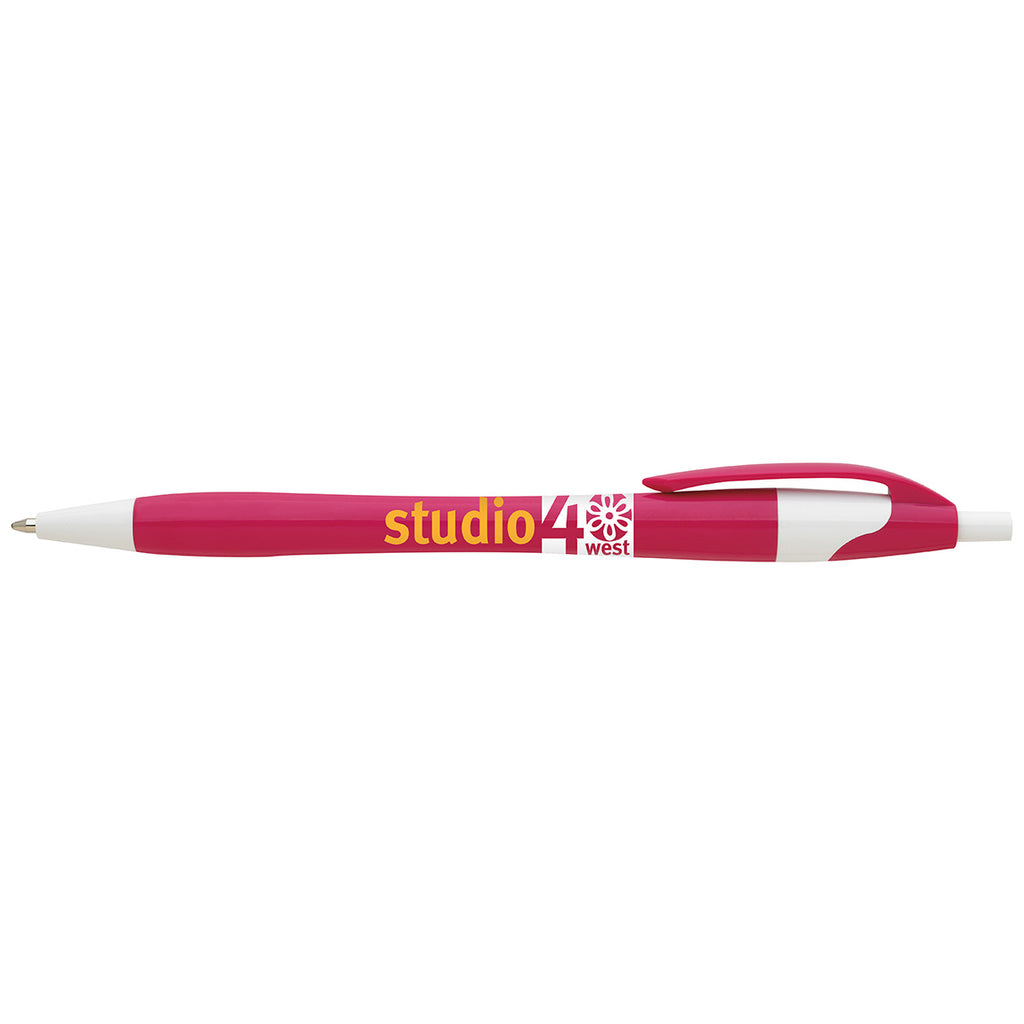 Add your corporate logo to the Good Value Pink with Blue Ink Dart Color clickable pen. These cost-efficient pens offer a solid color barrel of your choosing that will display your name beautifully. The pen provides consistent smooth writing while the ink lasts. Great to give out or allow customers to 'steal' these pens are a must-have. Order today.The minimum order for this product is 500 pieces.