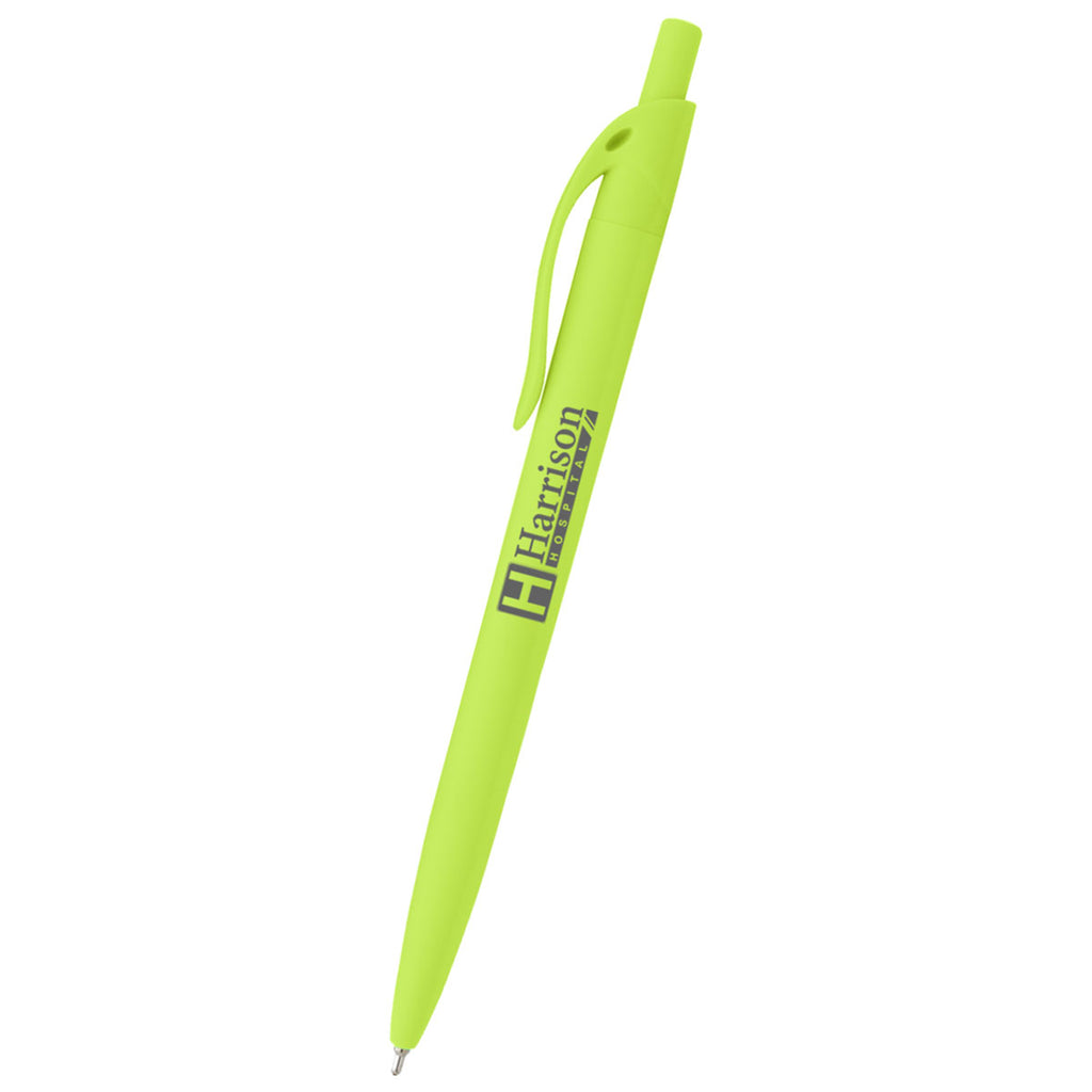 The Sleek Write Lime Green Rubberized Pen with a corporate logo is a simple and economical way to help people remember your company or brand. The sleek, clickable pen comes in a variety of colors to fill your needs. Perfect for the office, to giveaway, or to share with customers. Multi-color imprints are available.