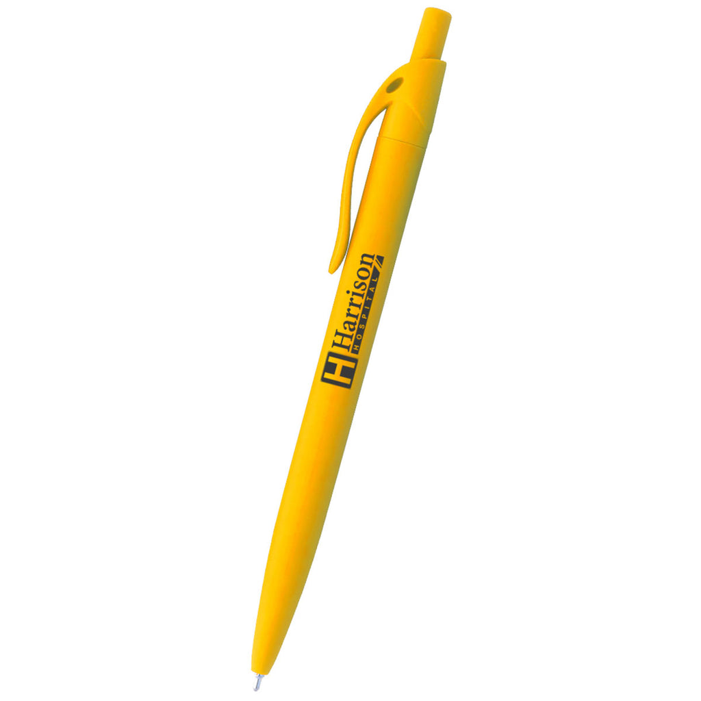 The Sleek Write Yellow Rubberized Pen with a corporate logo is a simple and economical way to help people remember your company or brand. The sleek, clickable pen comes in a variety of colors to fill your needs. Perfect for the office, to giveaway, or to share with customers. Multi-color imprints are available.