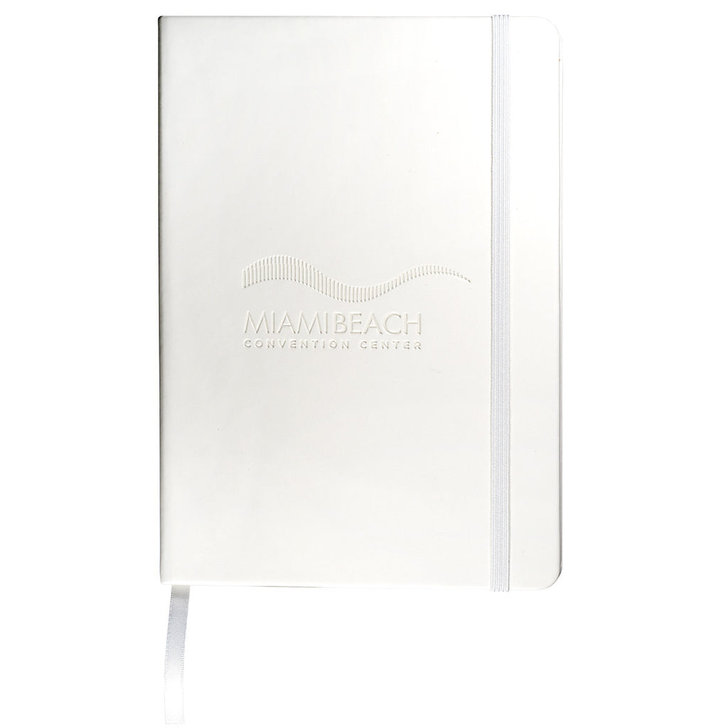 The minimum order for this product is 25 piecesHow do you reward the dedication and high-performance standards set by your team? The Leeman White Tuscany Journal represents a thoughtful corporate gift with the added bonus of including 3.25" wide by 3" tall imprint area to add your company logo. Now you have a cost-effective marketing tool that gets the word out about your brand. Rich faux leather and a polyester band ensure the Tuscany Journal enjoys a long product life. The elastic lop closure secures the 80 ruled pages that allow you to take notes during business meetings.