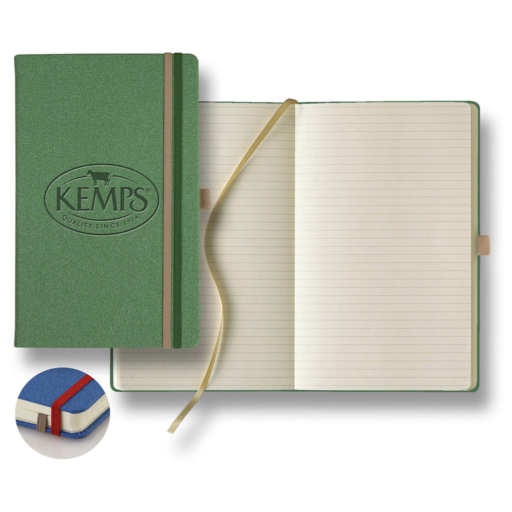 Bound in a rich and luxe material with an option of debossed imprint of your custom logo, Bi-Band Medium Ivory 240-page journal provides ample space for your notes in a stylish and fully-featured package. Promote your company and amp up your corporate swag with this customizable journal.