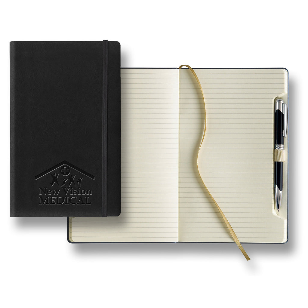 Tuscon Scribe Ivory is a no-nonsense, quality notebook that works flawlessly as a standalone or in a traveler's journal. It contains 240 die-cut lined, tabbed pages of Ivory paper that stand up to just about any pen. Its elegant cover can be custom imprinted with your company's logo.