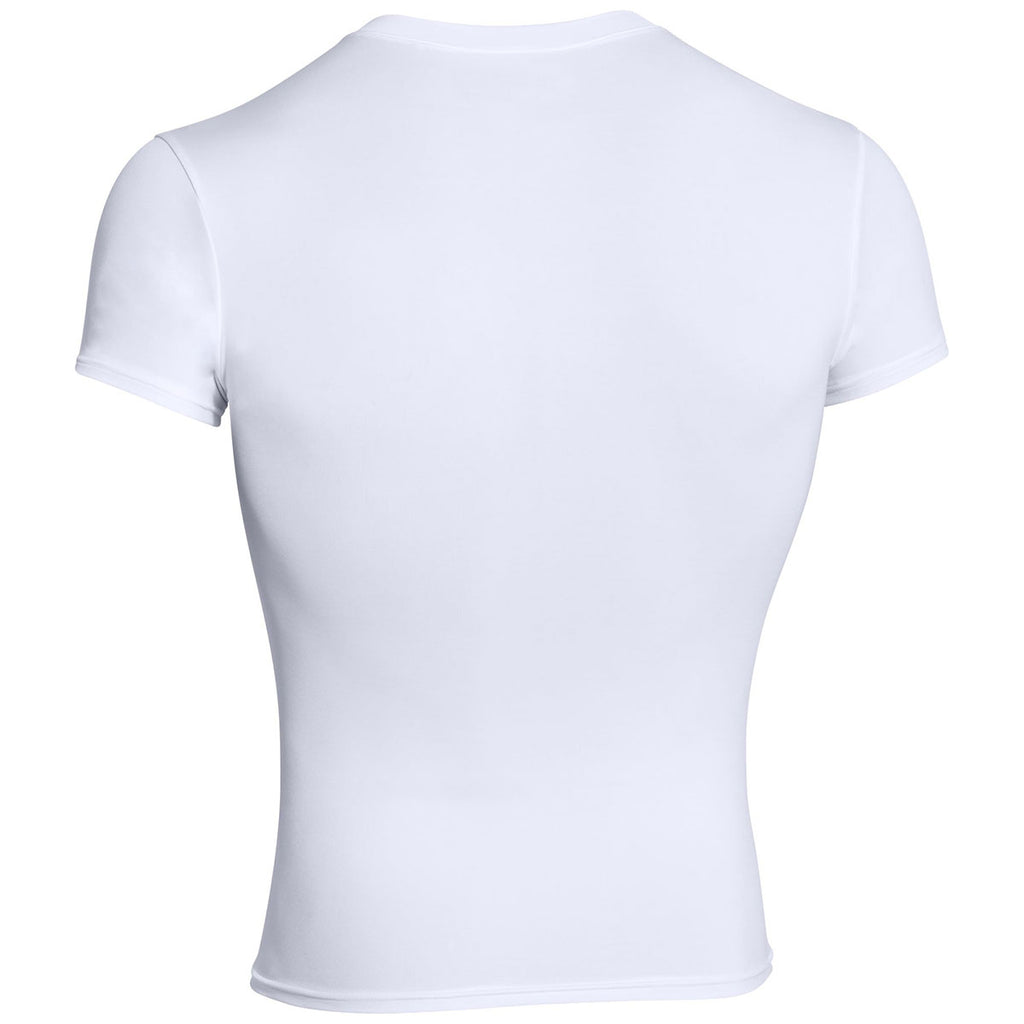 Show off your swag with your company logo imprint on the Under Armour Men's White Tactical HeatGear Compression V-Neck T-Shirt. This Compression V-Neck T-Shirt is versatile enough to rock solo or layered with a sports coat, dress shirt, polo or work uniform. The shirt is engineered with a breathable, tried and true field-tested HeatGear fabric that hugs the body for next-to-skin comfort. Four-way stretch construction maintains shape and allows full mobility to meet workday-and-beyond challenges. Built-in performance properties like moisture-wicking and quick-drying wick away sweat to make for dry comfort while odor-fighting antimicrobial technology inhibits the growth of bacteria and helps when the deodorant isn't keeping up with rigors of the workout or job site. Ergonomic seams deliver a chafe-free fit. Crafted for durability and long-term use and designed with both cold and warm weather in mind. It doesn't ride up and stays in place to become another layer of skin.Highlights