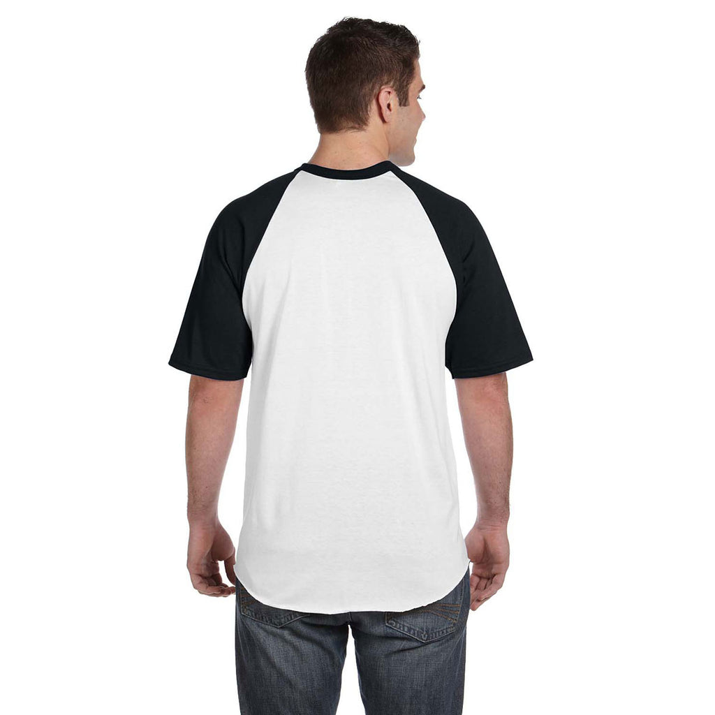 Attach your company logo to Augusta Sportswear Men's White/Black Short-Sleeve Baseball Jersey for a stylish shirt, perfect for a day at the park or as employee apparel for the company softball team. Available in 16 different colors, choose the right color tone to match your company logo. Features of this must-have clothing item include a comfortable 50/50 cotton/polyester jersey knit fabric, contrasting color sleeves, double-needle hem sleeves, and fishtail bottom. Purchase this shirt as corporate apparel and add your screen print company logo to the front of the shirt for the perfect finishing touch.Highlights
