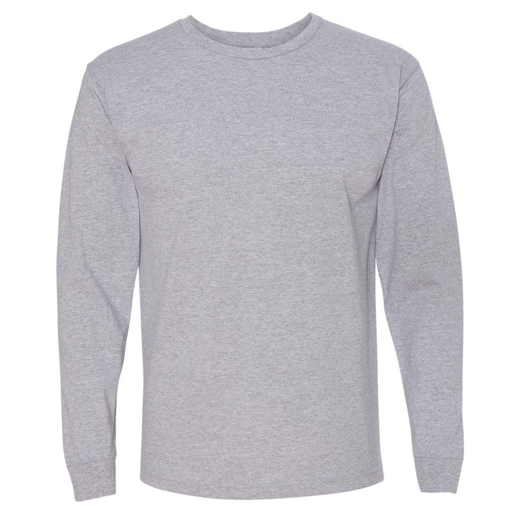 Bayside Men's Dark Ash USA-Made 100% Cotton Long Sleeve T-Shirt