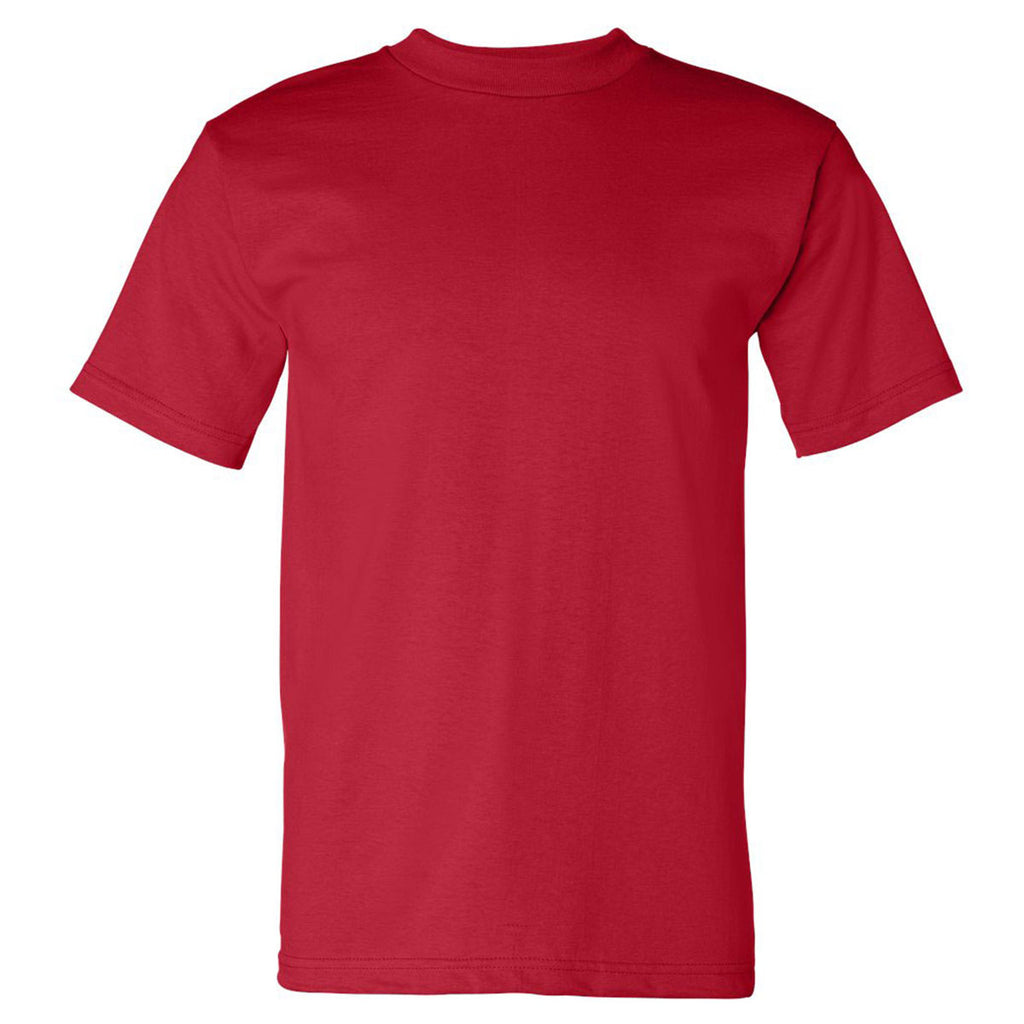 The Bayside Men's Red USA-Made Short Sleeve T-Shirt is more than just a T-Shirt, especially with your company's custom logo right there on the chest. The wide collar as well as the double-needle stitched sleeves and bottom hem put this shirt a cut above the everyday T-Shirt when it comes to fashion, and it would be a sharp company uniform. Available in a wide range of colors, your logo would blend in well regardless of its design. Or you could order different colors to give your employees a full uniform wardrobe. This logoed shirt also would be practical for company events such as trade shows.Highlights