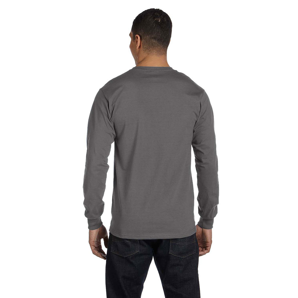 Add a screen print to this Hanes Men's Smoke Grey 6.1 oz Long-Sleeve Beefy-T to create custom employee apparel that will be an instant hit. Available in 23 different colors, one will be sure to compliment your custom logo. Created from 100% ringspun cotton with double-needle stitching throughout, the lay flat collar and tag-free label will make this a comfortable choice for everything from a trade show to golf events. Great for layering or wearing alone, this custom long sleeve tee will meet all your needs, whether they are focused around your company, a team, or just to beef up your wardrobe.Highlights