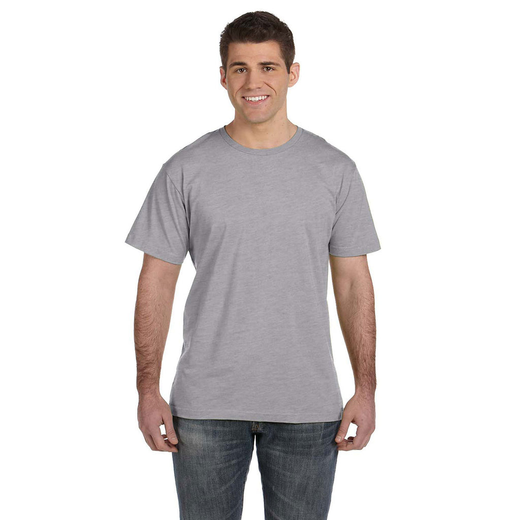 The LAT Men's Heather Fine Jersey T-Shirt is the perfect canvas for your company's custom logo. This basic shirt comes in an assortment of colors and features a large cotton fine jersey body that is conducive for displaying a corporate logo or emblem. The ribbed collar adds a ringed look while producing a better grip on the wearer's skin. This shirt is a great choice for casual company uniforms or for company giveaways. It also works well at recruiting events and can be suitable for a company athletic event if desired. Combined with your brand's logo, this shirt is the perfect way to spread the word about your company.Corresponding Women's Style: LAT Women's Heather Fine Jersey T-Shirt