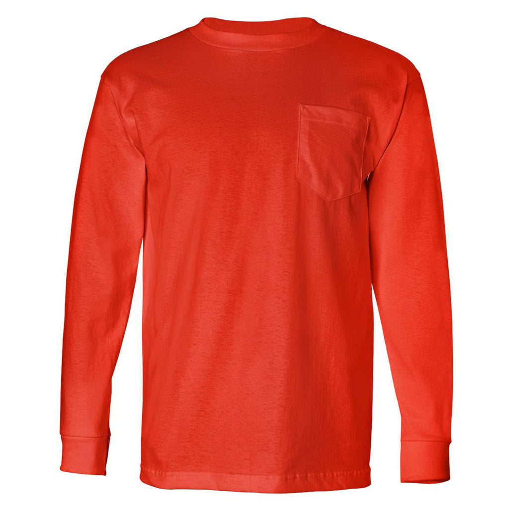 Bayside Men's Bright Orange USA-Made Long Sleeve T-Shirt with Pocket
