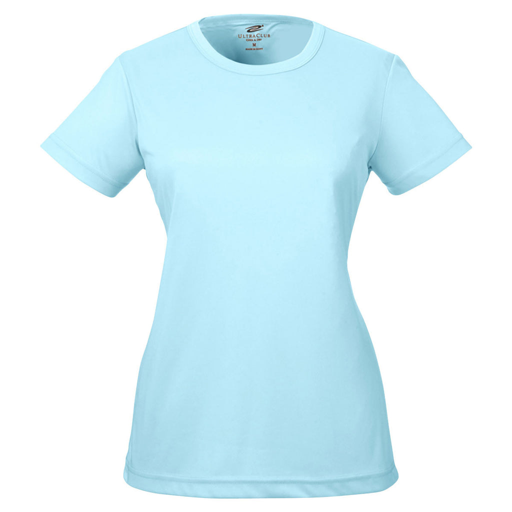 UltraClub Women's Ice Blue Cool & Dry Sport Performance Interlock T-Shirt