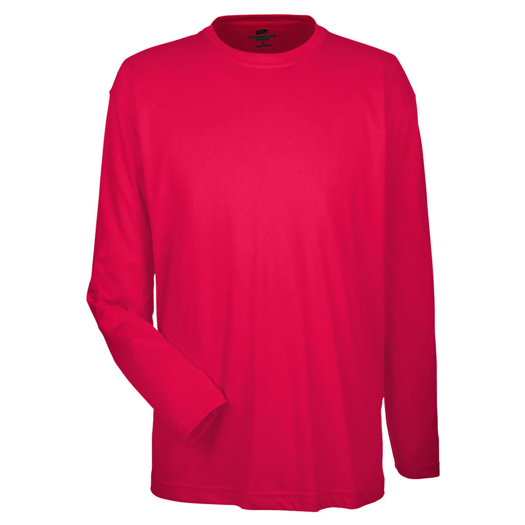 UltraClub Men's Red Cool & Dry Sport Long-Sleeve Performance Interlock T-Shirt