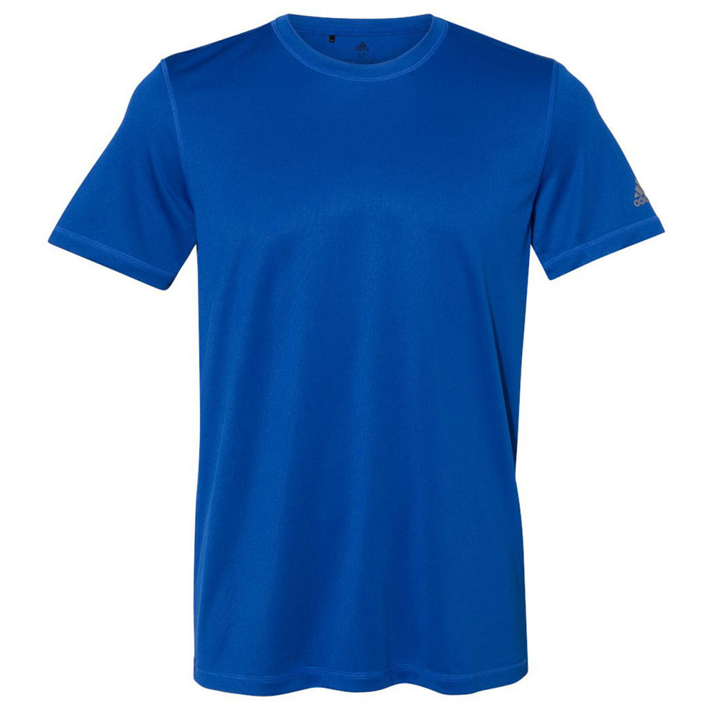 Stay comfortable and look great in a screen print Adidas Men's Collegiate Royal Sport T-Shirt. Ideal for the gym, a day with the family, or a quick round of golf, this 100% recycled polyester pique tee is good for the environment and great for you with UPF 50+ protection. Add a company logo to use these as employee apparel that will stand up to hard work or a corporate logo to use for corporate events as a way to showcase your company or organization. The crewneck design with open hem sleeve is designed for all day comfort whether worn alone or layered for warmth.