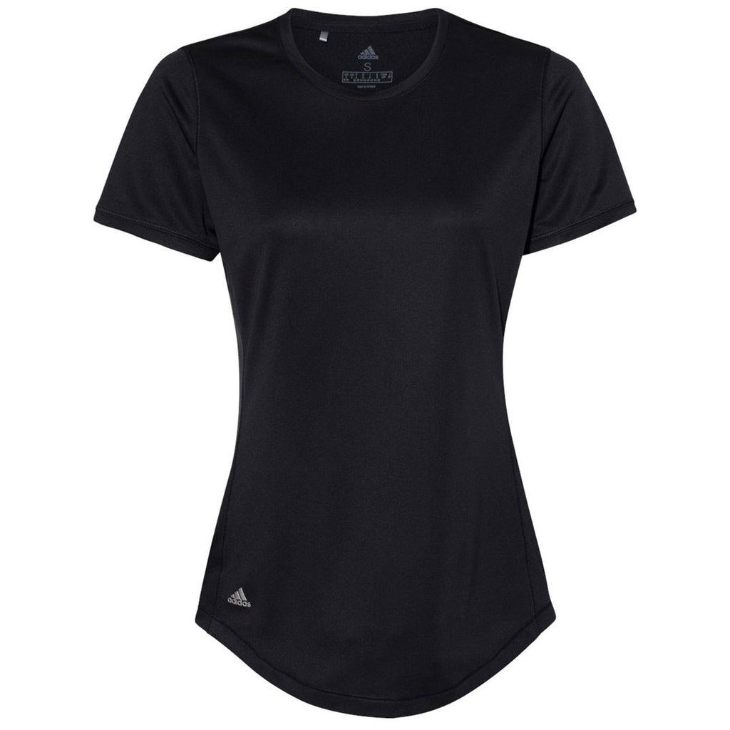 Hit the gym in a custom screen print Adidas Women's Black Sport T-Shirt. Made of 100% recycled polyester pique, this tee is good for the environment and your growing wardrobe. Add a custom logo to this crewneck sport shirt to use for team events or even employee apparel. The hydrophilic finish with UPF 50+ protection means this t-shirt can be worn outdoors all day and still remain comfortable, A curved hem offers extra coverage whether lifting weights or playing outdoors with the kids. Place an order today for these tees with a company logo to use as employee gifts that will be appreciated throughout the year