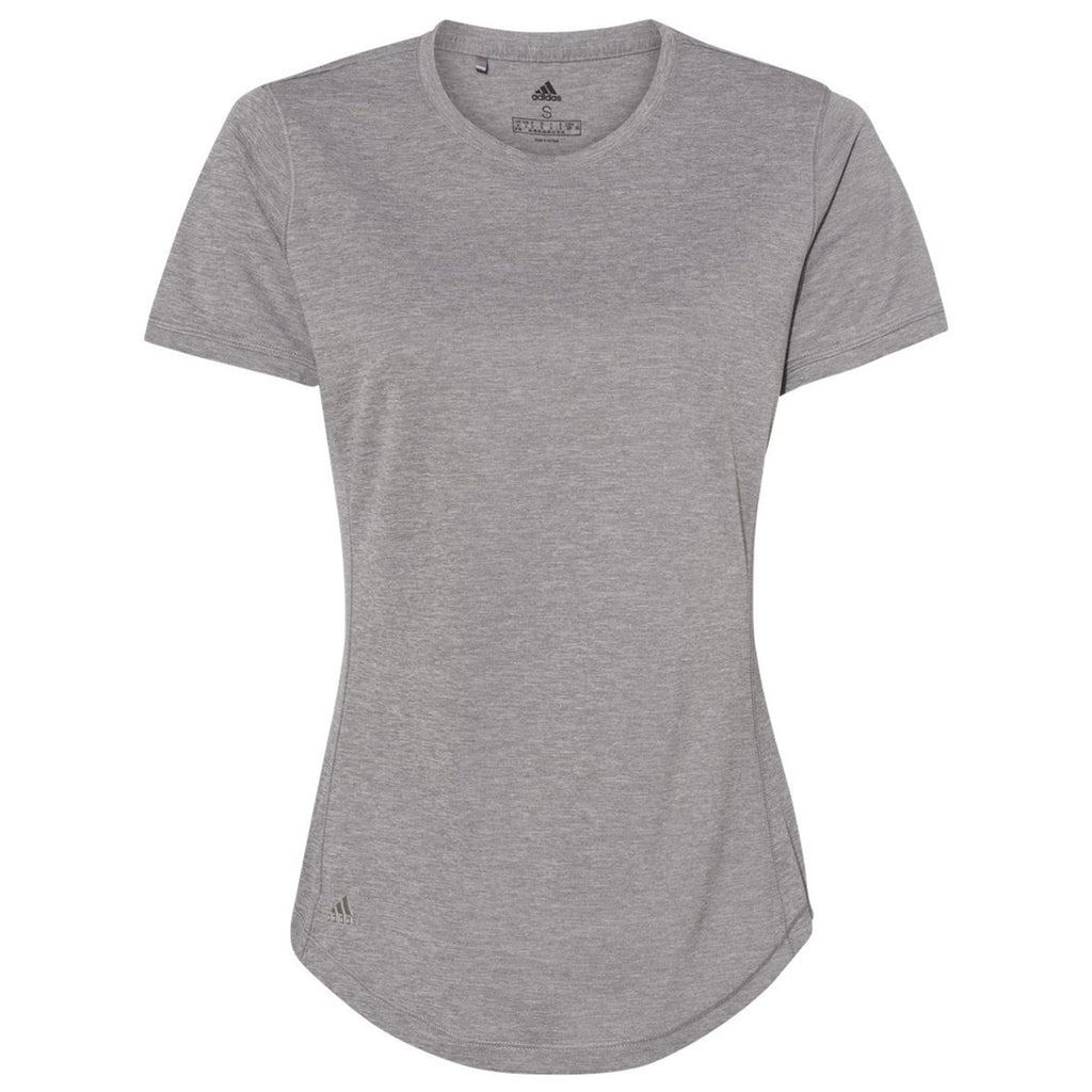 Hit the gym in a custom screen print Adidas Women's Grey Three Heather Sport T-Shirt. Made of 100% recycled polyester pique, this tee is good for the environment and your growing wardrobe. Add a custom logo to this crewneck sport shirt to use for team events or even employee apparel. The hydrophilic finish with UPF 50+ protection means this t-shirt can be worn outdoors all day and still remain comfortable, A curved hem offers extra coverage whether lifting weights or playing outdoors with the kids. Place an order today for these tees with a company logo to use as employee gifts that will be appreciated throughout the year.