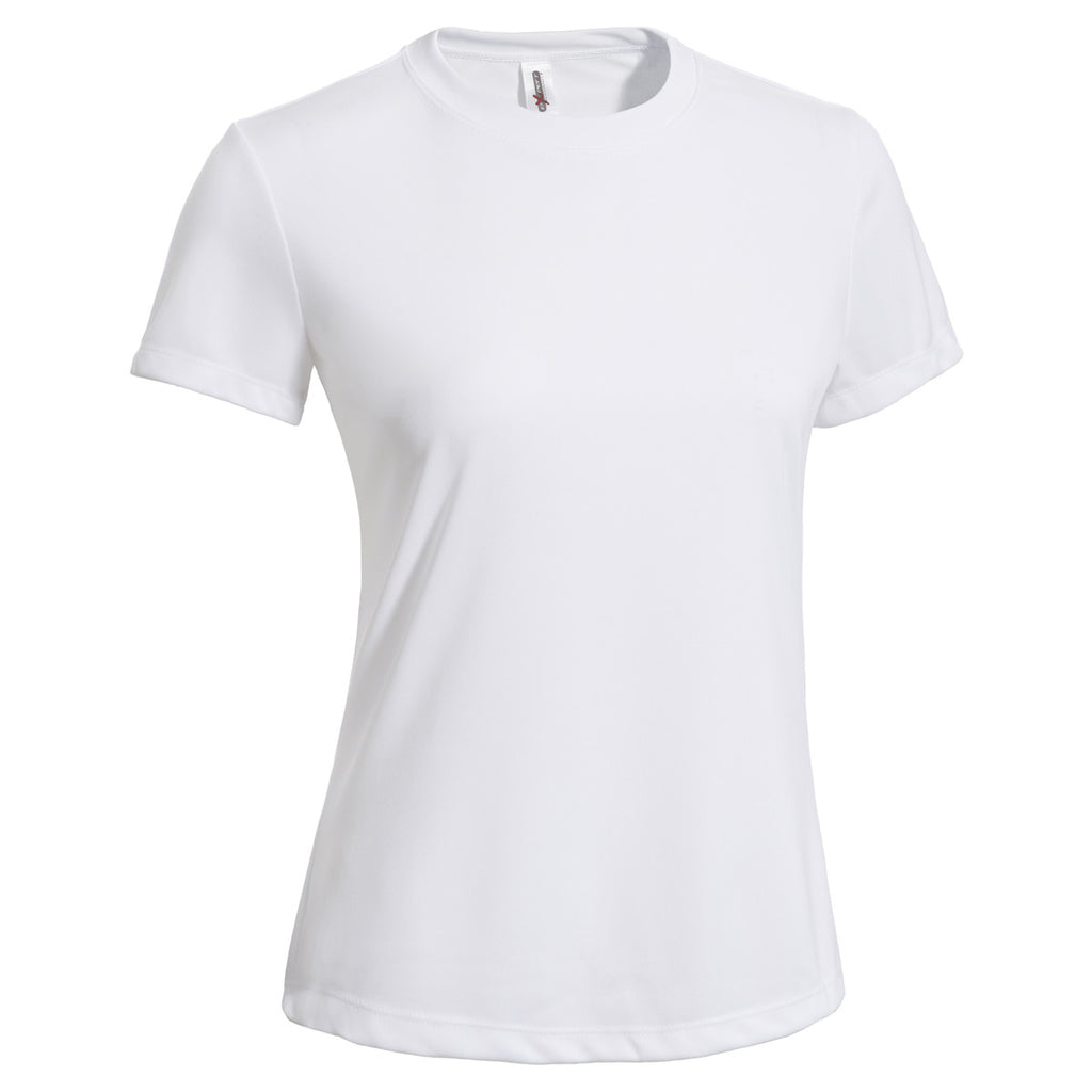 Expert Women's White Short Sleeve Tee features short sleeves, crew neck and crafted from 100% microfiber polyester, available in a range of hues. Perfect for everyday wear or the most intense workouts, this tee comes in a relaxed fit in feminine contoured design. Soft, breathable fabric expertly wicks sweat to keep you as dry as possible. Treated with BodyFreshe to eliminate odors and inhibit odor-causing bacteria. Promote a healthy and active lifestyle with these workout-ready shirts, ready to sport custom logo imprint of your company.The minimum order for this product is 12 pieces.