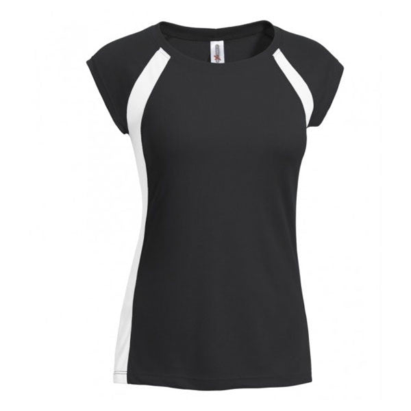 Flaunt some shoulder with tiny cap sleeves with Expert Women's Black/White Raglan Colorblock. Enlivened by short sleeves and v-neck with curved hem, this tee flaunts a relaxed fit in feminine appeal. Crafted from sweat-wicking 100% microfiber polyester oXy mesh fabric. Treated with BodyFreshe anti-bacterial tech to keep the garment fresher and odorless for longer. Complete this women's tee with an imprint of your company's logo or message with our quick and reliable customization service. Perfect for sports events, corporate giveaway or general promotional merchandise.The minimum order for this product is 12 pieces.