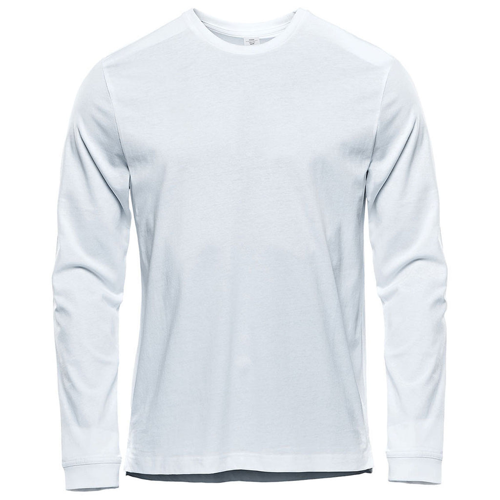 Stormtech Men's White Equinox Long Sleeve Tee is a sustainably sourced tee that will handle your screen print with ease. The cotton-poly single jersey fabric is ultra-soft while maintaining its shape with repeated wash and wear. Created with moisture management to keep you comfortable and a UPF rating of 30+ this custom long-sleeve tee is great for working out, hanging out, and everything in between. Add a company logo to use as uniforms or employee gifts or add something custom to build your logoed apparel line. Great for trade shows and specialized events, but also wonderful for everyday wear. Place an order today for these versatile tees.Highlights