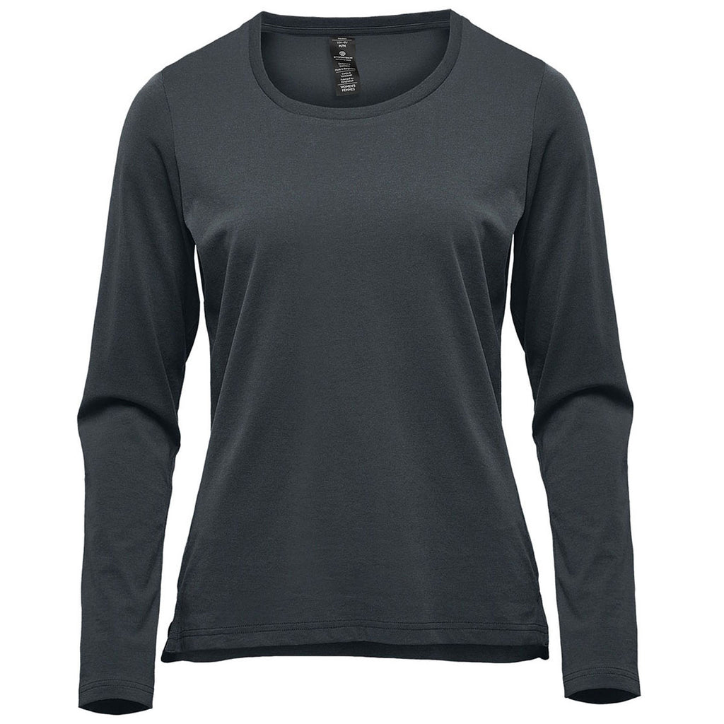 Enjoy screen print on the Stormtech Women's Dolphin Equinox Long Sleeve Tee made from sustainably sourced BCI cotton blended with polyester single jersey fabric. The ultra-soft long sleeve tee offers moisture and odor control for comfortable all day wear and a UPF 30+ rating to protect you from the sun. Add a company logo to use these as employee uniforms or gifts for those who work hard day in and out. Try a custom logo to use in your logoed apparel line to appeal to nearly everyone. Ideal as warm-up gear, workout wear, or for daily use. Place an order today.Highlights