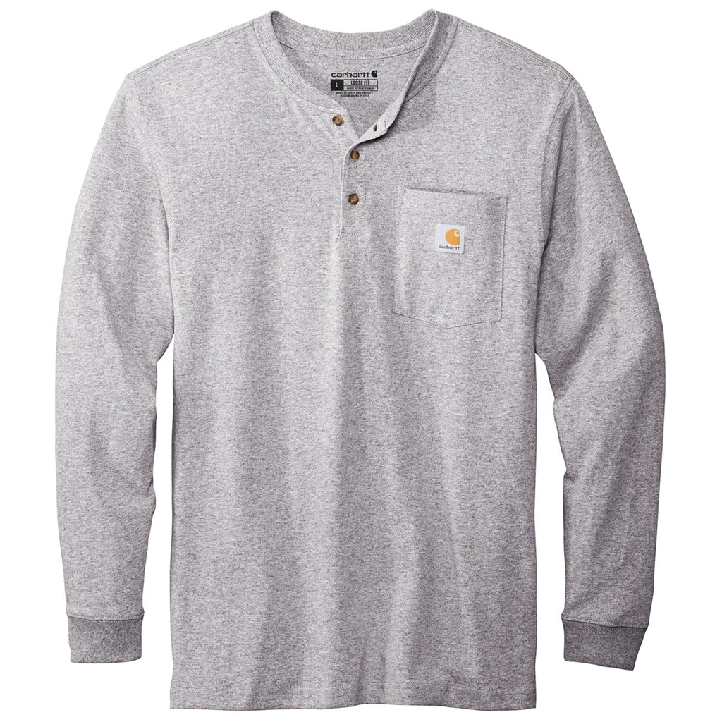 Choose a corporate logo for the Carhartt Men's Heather Grey Long Sleeve Henley T-Shirt to create tough gear that is comfortable to wear. Great for those who work and play outdoors, Carhartt is known for being top of the line for farming, camping, construction, and much more. Place an order for this loose-fitting tee before time runs out.This product can only ship within the United States and Canada.